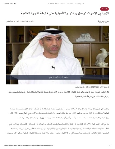 زﺟﺣو ﺎﮭﺗﯾﺳﻓﺎﻧﺗو ﺎﮭﺗدﺎﯾر لﺻاوﺗ ةدﯾﺷرﻟا ﺎﮭﺗدﺎﯾﻗ تﺎﮭﯾﺟوﺗﺑ تارﺎﻣﻹا ﺔﻟود نإ ﺔﯾﺟرﺎﺧﻟا ةرﺎﺟﺗﻠﻟ ﺔﻟود رﯾزو يدوﯾزﻟا دﻣﺣأ نﺑ ﻲﻧﺎﺛ روﺗﻛدﻟا لﺎﻗ