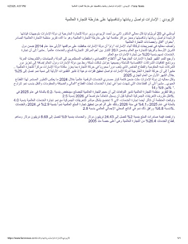 4/23/25, 4:07 PM ﺔﯾﻣﻟﺎﻌﻟا ةرﺎﺟﺗﻟا ﺔطرﺎﺧ ﻰﻠﻋ ﺎﮭﺗﯾﺳﻓﺎﻧﺗو ﺎﮭﺗدﺎﯾر لﺻاوﺗ تارﺎﻣﻹا : يدوﯾزﻟا - Fana News