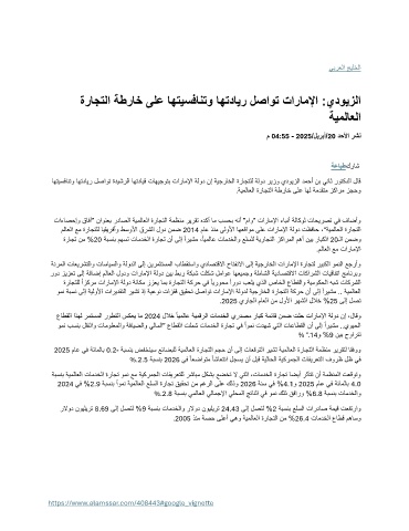 ومن ةبسن ىلإ ةيلولأا تاريدقتلا ريشت ذإ ةيعون تازفق قيقحت لصاوت تاراملإا ةلودل ةيجراخلا ةراجتلا ةكرح نأ ىلإ ًاريشم .. ةيملاعلا