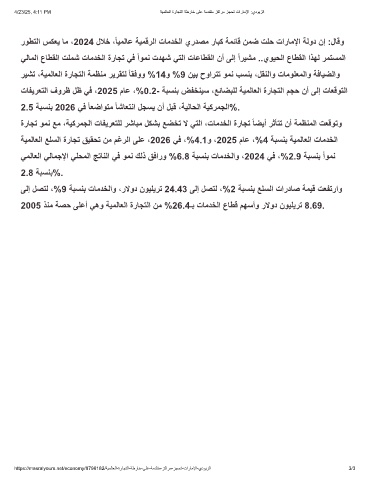 ﺔﯾﻣﻟﺎﻌﻟا ﻊﻠﺳﻟا ةرﺎﺟﺗ ﻖﯾﻘﺣﺗ نﻣ مﻏرﻟا ﻰﻠﻋ ،2026 ﻲﻓ ،%4.1و ،2025 مﺎﻋ ،%4 ﺔﺑﺳﻧﺑ ﺔﯾﻣﻟﺎﻌﻟا تﺎﻣدﺧﻟا