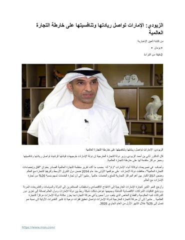 ا هتيسفانتو اهتداير لصاوت ةديشرلا اهتدايق تاهيجوتب تاراملإا ةلود نإ ةيجراخلا ةراجتلل ةلود ريزو يدويزلا دمحأ نب يناث روتكدلا لاق