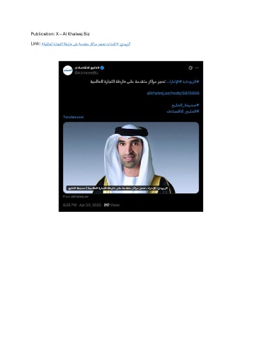 Publication: X – Al Khaleej Biz Link: #ةيلماعلا ةراجتلا ةطراخ ىلع ةمدقتم زكارم زجحت تاراملإا# :يدويزلا