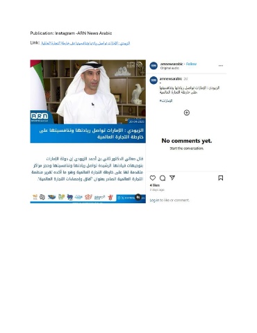 Publication: Instagram -ARN News Arabic Link: .ةيلماعلا ةراجتلا ةطراخ ىلع اهتيسفانتو اهتداير لصاوت تاراملإا : يدويزلا