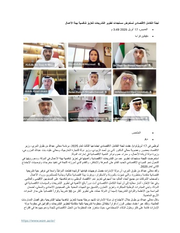يف اهتيؤر معدو ،ةلودلا يف لامعلأا ةئيب ةيسفانت زيزعت يف اهتيمهأو ةيداصتقلاا تاعيرشتلا نم ددع ريوطت تادجتسم ةنجللا تضرعتسا