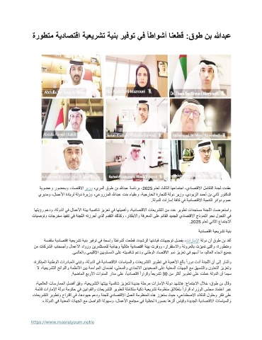 ةيوضعو روضحبو ،داصتقلاا ريزو ،يرملا قوط نب اللهدبع ةسائرب ، 2025 ماعل ثلاثلا اهعامتجا ،يداصتقلاا لماكتلا ةنجل تدقع