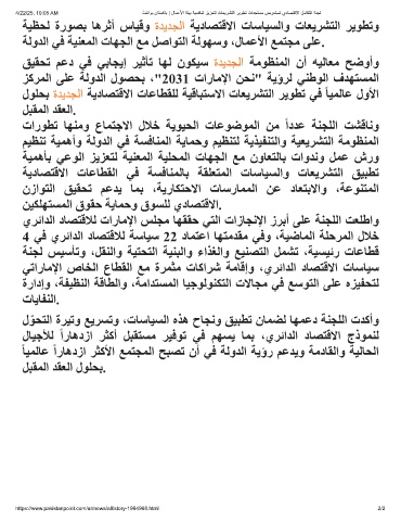 يﺮﺋاﺪﻟا دﺎﺼﺘﻗﻼﻟ تارﺎﻣﻹا ﺲﻠﺠﻣ ﺎﮭﻘﻘﺣ ﻲﺘﻟا تازﺎﺠﻧﻹا زﺮﺑأ ﻰﻠﻋ ﺔﻨﺠﻠﻟا ﺖﻌﻠطاو