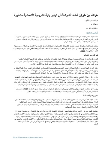 ةمدقتم ةيداصتقا ةيعيرشت ةينب ريفوت يف ةعساو ًاطاوشأ تعطق ،ةديشرلا اهتدايق تاهيجوت لضفب ،تاراملإا ةلود نأ قوط نب دكأ