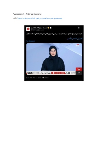 Publication: X – Al Etihad Economy Link: " لبقتسلما تاراكتبا معدو ةكارشلا زيزعتل يبد يف ديدجلا اهرقم حتتفت "غنيدلوه دنجيل