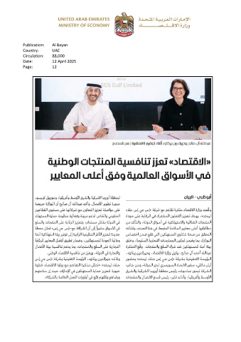 Publication: Al Bayan Country: UAE Circulation: 88,000 Date: 12 April 2025 Page: 12