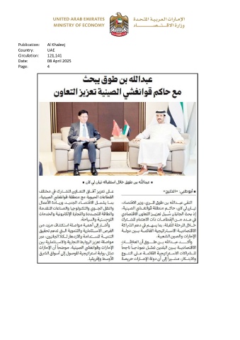 Publication: Al Khaleej Country: UAE Circulation: 121,141 Date: 08 April 2025 Page: 4
