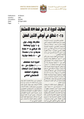 Publication: Al Watan Country: UAE Circulation: 83,000 Date: 05 April 2025 Page: 1