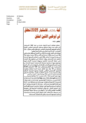 Publication: Al Wahda Country: UAE Circulation: 19,400 Date: 05 April 2025 Page: 9