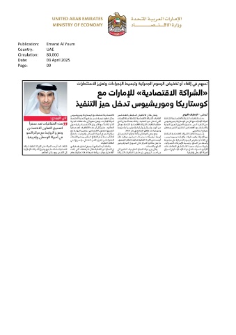 Publication: Emarat Al Youm Country: UAE Circulation: 80,000 Date: 03 April 2025 Page: 09