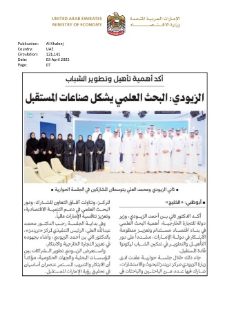 Publication: Al Khaleej Country: UAE Circulation: 121,141 Date: 03 April 2025 Page: 07