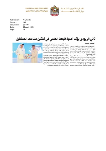 Publication: Al Wahda Country: UAE Circulation: 19,400 Date: 03 April 2025 Page: 08
