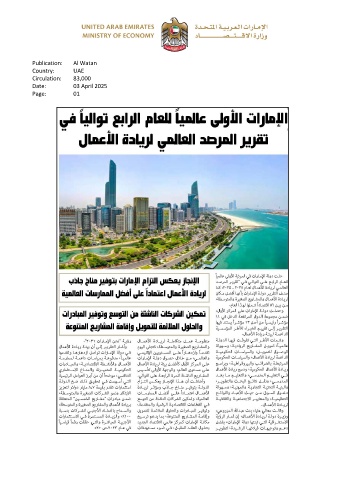 Publication: Al Watan Country: UAE Circulation: 83,000 Date: 03 April 2025 Page: 01