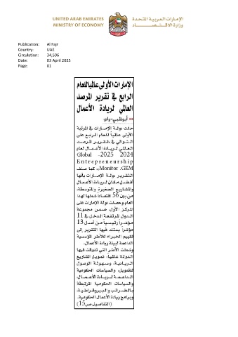 Publication: Al Fajr Country: UAE Circulation: 34,596 Date: 03 April 2025 Page: 01