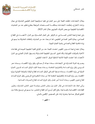 عﺎطﻘﻟا ﻲﻓ ءﺎــــــــــــﻀﻋﻷا لودﻟا نﯿﺒ كرﺘــــــــــــﺸﻤﻟا لﻤﻌﻟا ﻰﻠﻋ زﯿﻛرﺘﻟا مﺘ ، ﻲﻋﺎﻨــــــــــــﺼﻟا نوﺎﻌﺘﻟا ﺔﻨﺠﻟ عﺎﻤﺘﺠا ﻲﻓ و