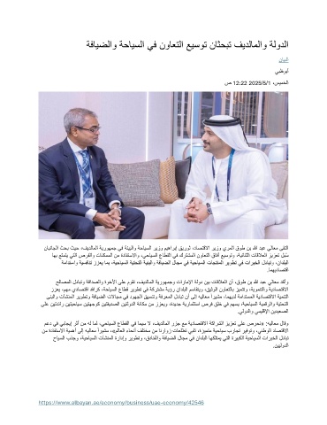 نابناجلا ثحب ثيح ،فيدلاملا ةيروهمج يف ةئيبلاو ةحايسلا ريزو ميهاربإ قيروث ،داصتقلاا ريزو يرملا قوط نب الله دبع يلاعم ىقتلا