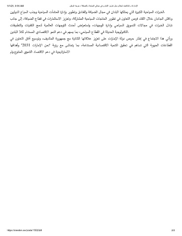 بﻧﺎﺟ ﻰﻟإ ،ﺔﻓﺎيضﻟا عﺎطﻗ ﻲﻓ تارﺎمثتﺳﻻا زيزﻌﺗو ،ﺔكرتشمﻟا ﺔيﺣﺎيسﻟا تﺎجتنمﻟا ريوطﺗ ﻲﻓ نوﺎﻌتﻟا صرﻓ ءﺎﻘﻠﻟا لﻼﺧ نﺎبﻧﺎجﻟا شﻗﺎﻧو