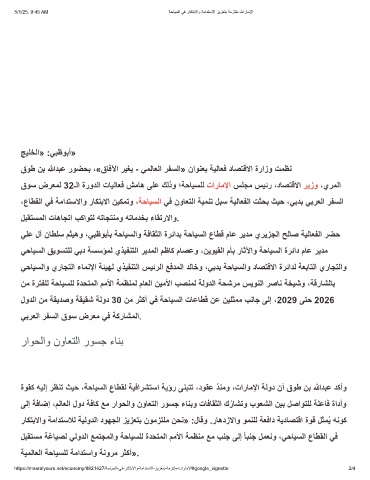ةوﻘﻛ ﮫﯾﻟإ رظﻧﺗ ثﯾﺣ ،ﺔﺣﺎﯾﺳﻟا عﺎطﻘﻟ ﺔﯾﻓارﺷﺗﺳا ﺔﯾؤر ﻰﻧﺑﺗﺗ ،دوﻘﻋ ذﻧﻣو ،تارﺎﻣﻹا ﺔﻟود نأ قوط نﺑ ﷲدﺑﻋ دﻛأو