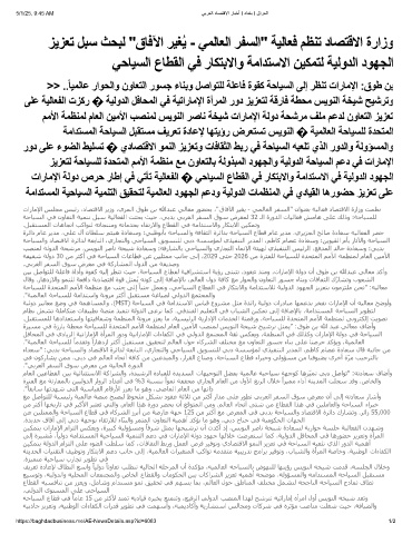ﻰﻟإ ةﺮﯿﺸُﻣ ،ﺎﯿﻟود ﺔﻣاﺪﺘﺴﻤﻟا ﺔﯿﺣﺎﯿﺴﻟا ﺔﯿﻤﻨﺘﻟا ﻢﻋد ﻲﻓ تارﺎﻣﻹا ﺔﻟود دﻮﮫﺟ ﺎﮫﻟﻼﺧ ﺖﺿﺮﻌﺘﺳا ﺎﻤﻛ ،ﺔﯿﻟوﺪﻟا ﻞﻓﺎﺤﻤﻟا ﻲﻓ ﺎھرﻮﻀﺣ ﺰﻳﺰﻌﺗو ةأﺮﻤﻟا