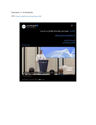 Publication: X – Al Khaleej Biz Link: #ةحايسلا يف راكتبلااو ةمادتسلاا زيزعتب ةمزتلم تاراملإا