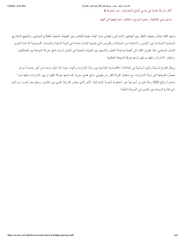 ًاوﻣﻧ دﻧﮭﻟاو تارﺎﻣﻹا نﯾﺑ نارﯾطﻟا ﺔﻛرﺣ دﮭﺷﺗ ﺎﻣﻛ ، ً ﺎﯾوﻧﺳ يدﻧھ ﺢﺋﺎﺳ ﻲﻧوﯾﻠﻣ نﻣ رﺛﻛأ ﺔﻟودﻟا لﺎﺑﻘﺗﺳا ﻊﻣ ،تارﺎﻣﻹا ﺔﻟود ﻰﻟإ ﺔﺣﺎﯾﺳﻠﻟ ةرّدﺻﻣ