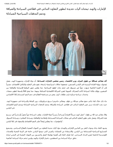 ﻞﻀﻔﺑ ،ﺪﻨﮫﻟا ﺔﻳرﻮﮫﻤﺟو تارﺎﻣﻹا ﺔﻟود نأ ،ﺔﺣﺎﯿﺴﻠﻟ تارﺎﻣﻹا ﺲﻠﺠﻣ ﺲﯿﺋر ،دﺎﺼﺘﻗﻻا ﺮﻳزو ،يﺮﻤﻟا قﻮط ﻦﺑ ﷲﺪﺒﻋ ﻲﻟﺎﻌﻣ ﺪﻛأ