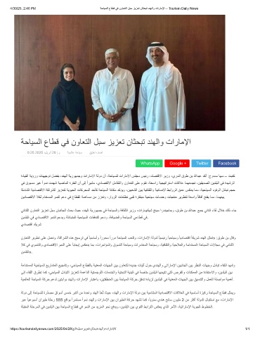 4/30/25, 2:46 PM ﺔﺣﺎﯾﺳﻟا عﺎطﻗ ﻲﻓ نوﺎﻌﺗﻟا لﺑﺳ زﯾزﻌﺗ نﺎﺛﺣﺑﺗ دﻧﮭﻟاو تارﺎﻣﻹا – Tourism Daily News