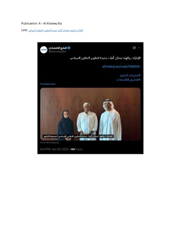 Publication: X – Al Khaleej Biz Link: يحايسلا نواعتلا ريوطتل ةديدج تايلآ ناثحبت دنهلاو تاراملإا