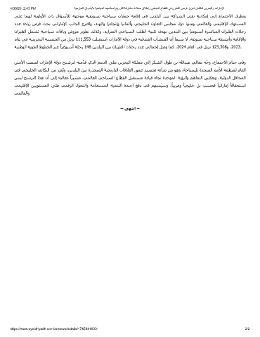 4/30/25, 2:43 PM ﺔﯾﺟرﺎﺧﻟا قاوﺳﻷﺎﺑ ﺔﯾﺣﺎﯾﺳﻟا ﺎﻣﮭﻣﻟﺎﻌﻣﻟ ﺞﯾورﺗﻠﻟ ﺔﻛرﺗﺷﻣ تﻼﻣﺣ قﻼطإو ﻲﺣﺎﯾﺳﻟا عﺎطﻘﻟا ﻲﻓ نوﺎﻌﺗﻟا صرﻓ زﯾزﻌﺗ نﺎﺷﻗﺎﻧﺗ نﯾرﺣﺑﻟاو تارﺎﻣﻹا