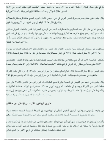 787 ﻎﻨﯾﻮﺑ» ﻦﻣ 4و «350 ﮫﯾإ» صﺎﺑﺮﯾإ زاﺮط ﻦﻣ 6 ﺔﯿﻘﺒﺘﻤﻟا تاﺮﺋﺎﻄﻟا ﻞﻤﺸﺗو ،(بآ) ﺲﻄﺴﻏأ ﻲﻓ ﺎﮭﻠﯿﻐﺸﺗ».