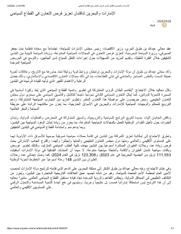 4/29/25, 2:30 PM ﻲﺣﺎﯾﺳﻟا عﺎطﻘﻟا ﻲﻓ نوﺎﻌﺗﻟا صرﻓ زﯾزﻌﺗ نﺎﺷﻗﺎﻧﺗ نﯾرﺣﺑﻟاو تارﺎﻣﻹا