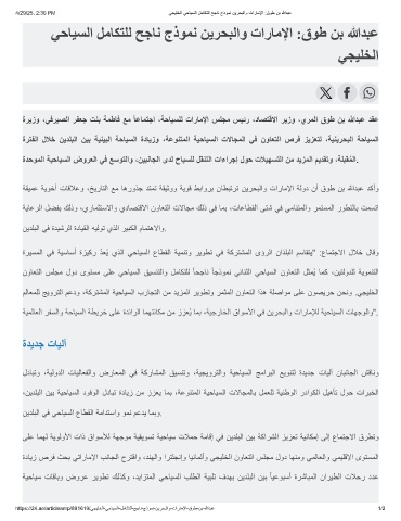 4/29/25, 2:30 PM ﻲﺟﯾﻠﺧﻟا ﻲﺣﺎﯾﺳﻟا لﻣﺎﻛﺗﻠﻟ ﺢﺟﺎﻧ جذوﻣﻧ نﯾرﺣﺑﻟاو تارﺎﻣﻹا :قوط نﺑ ﷲدﺑﻋ