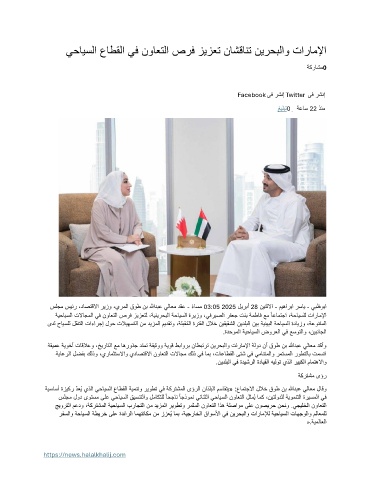 ةيحايسلا تلااجملا يف نواعتلا صرف زيزعتل ،ةينيرحبلا ةحايسلا ةريزو ،يفريصلا رفعج تنب ةمطاف عم ًاعامتجا ،ةحايسلل تاراملإا