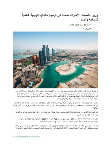 معدتو ،يتاراملإا يحايسلا جتنملا ةيسفانت زيزعت يف ةلودلا ةيؤر حاجن ةيباجيلإا تارشؤملا هذه دكؤت " داصتقلاا ريزو يلاعم فاضأو