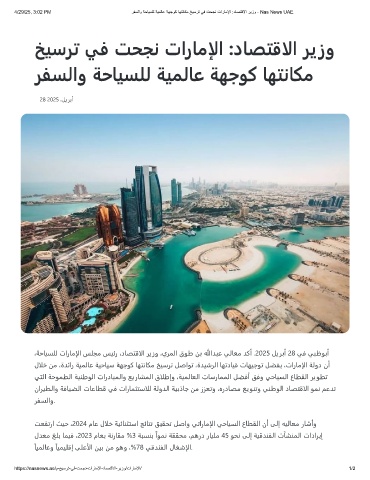 4/29/25, 3:02 PM رﻔﺳﻟاو ﺔﺣﺎﯾﺳﻠﻟ ﺔﯾﻣﻟﺎﻋ ﺔﮭﺟوﻛ ﺎﮭﺗﻧﺎﻛﻣ ﺦﯾﺳرﺗ ﻲﻓ تﺣﺟﻧ تارﺎﻣﻹا :دﺎﺻﺗﻗﻻا رﯾزو - Nas News UAE