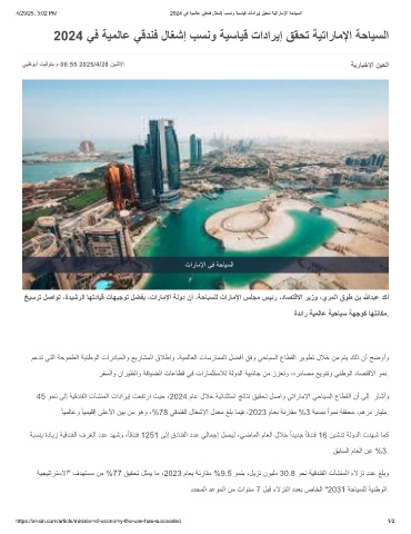 ﺦﯾﺳرﺗ لﺻاوﺗ ،ةدﯾﺷرﻟا ﺎﮭﺗدﺎﯾﻗ تﺎﮭﯾﺟوﺗ لﺿﻔﺑ ،تارﺎﻣﻹا ﺔﻟود نأ ،ﺔﺣﺎﯾﺳﻠﻟ تارﺎﻣﻹا سﻠﺟﻣ سﯾﺋر ،دﺎﺻﺗﻗﻻا رﯾزو ،يرﻣﻟا قوط نﺑ ﷲدﺑﻋ دﻛأ