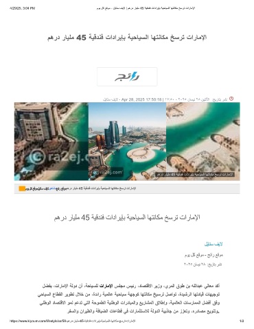 مھرد رﺎﯾﻠﻣ 45 ﺔﯾﻗدﻧﻓ تادارﯾﺈﺑ ﺔﯾﺣﺎﯾﺳﻟا ﺎﮭﺗﻧﺎﻛﻣ ﺦﺳرﺗ تارﺎﻣﻹا