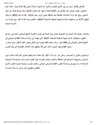 مﻋدﺗو ،ﻲﺗارﺎﻣﻹا ﻲﺣﺎﯾﺳﻟا ﺞﺗﻧﻣﻟا ﺔﯾﺳﻓﺎﻧﺗ زﯾزﻌﺗ ﻲﻓ ﺔﻟودﻟا ﺔﯾؤر حﺎﺟﻧ ﺔﯾﺑﺎﺟﯾﻹا تارﺷؤﻣﻟا هذھ دﻛؤﺗ» :فﺎﺿأو