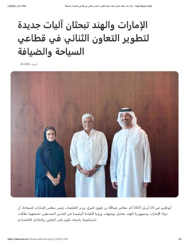 4/29/25, 2:57 PM ﺔﻓﺎﯾﺿﻟاو ﺔﺣﺎﯾﺳﻟا ﻲﻋﺎطﻗ ﻲﻓ ﻲﺋﺎﻧﺛﻟا نوﺎﻌﺗﻟا رﯾوطﺗﻟ ةدﯾدﺟ تﺎﯾﻟآ نﺎﺛﺣﺑﺗ دﻧﮭﻟاو تارﺎﻣﻹا - Nas News UAE