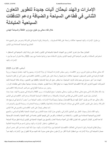 ﺔﯾؤرو تﺎﮭﯾﺟوﺗ لﺿﻔﺑ ،دﻧﮭﻟا ﺔﯾروﮭﻣﺟو تارﺎﻣﻹا ﺔﻟود نأ ،ﺔﺣﺎﯾﺳﻠﻟ تارﺎﻣﻹا سﻠﺟﻣ سﯾﺋر ،دﺎﺻﺗﻗﻻا رﯾزو ،يرﻣﻟا قوط نﺑ ﷲدﺑﻋ ﻲﻟﺎﻌﻣ دﻛأ
