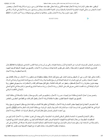 2031 تارﺎﻣﻹا نﺣﻧ" ﺔﯾؤر تﺎﻓدﮭﺗﺳﻣ ﻊﻣ ﻰﺷﺎﻣﺗﯾ ﺎﻣﺑ ﺎﮭﺗﺎﻧﻛﻣﻣ رﯾوطﺗو لﺎﻣﻋﻷا ةدﺎﯾر ﺔﺋﯾﺑ زﯾزﻌﺗ دوﮭﺟ رﺎطإ".