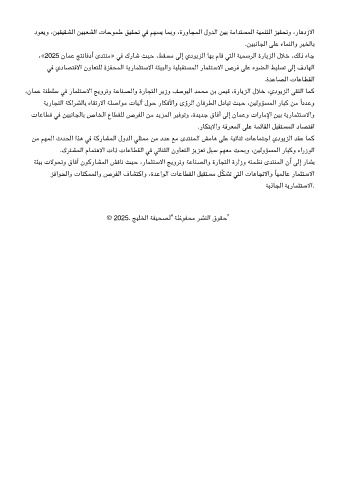 ،«2025 نﺎﻤﻋ ﺞﺘﻧﺎﻓدأ ىﺪﺘﻨﻣ» ﻓ كرﺎﺷ ﺚﻴﺣ ،ﻂﻘﺴﻣ ﻟإ يدﻮﻳﺰﻟا ﺎﻬﺑ مﺎﻗ ﺘﻟا ﺔﻴﻤﺳﺮﻟا ةرﺎﻳﺰﻟا لﻼﺧ ،ﻚﻟذ ءﺎﺟ