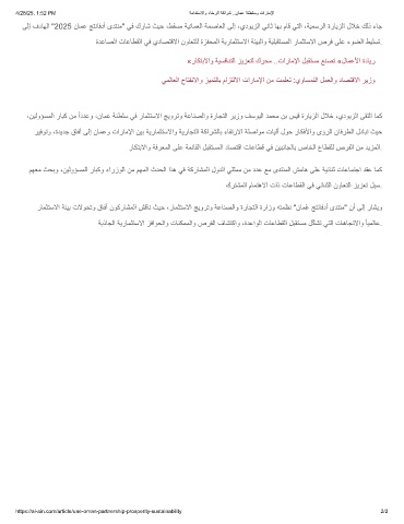 ﻰﻟإ فدﺎﮭﻟا "2025 نﺎﻣﻋ ﺞﺗﻧﺎﻓدأ ىدﺗﻧﻣ" ﻲﻓ كرﺎﺷ ثﯾﺣ ،طﻘﺳﻣ ﺔﯾﻧﺎﻣﻌﻟا ﺔﻣﺻﺎﻌﻟا ﻰﻟإ ،يدوﯾزﻟا ﻲﻧﺎﺛ ﺎﮭﺑ مﺎﻗ ﻲﺗﻟا ،ﺔﯾﻣﺳرﻟا ةرﺎﯾزﻟا لﻼﺧ كﻟذ ءﺎﺟ