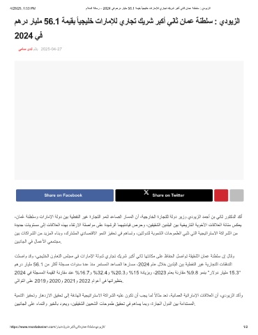 ،نﺎﻣُﻋ ﺔﻧطﻠﺳو تارﺎﻣﻹا ﺔﻟود نﯾﺑ ﺔﯾطﻔﻧﻟا رﯾﻏ ةرﺎﺟﺗﻟا وﻣﻧﻟ دﻋﺎﺻﻟا رﺎﺳﻣﻟا نأ ،ﺔﯾﺟرﺎﺧﻟا ةرﺎﺟﺗﻠﻟ ﺔﻟود رﯾزو يدوﯾزﻟا دﻣﺣأ نﺑ ﻲﻧﺎﺛ روﺗﻛدﻟا دﻛأ
