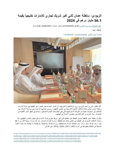 ةميقب ًايجيلخ تاراملإل يراجت كيرش ربكأ يناث نامع ةنطلس :يدويزلا