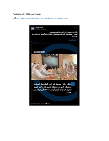 Publication: X – Akhbar Al Emarat ً Link: 2024 يف مهرد رايلم 56.1 ةميقب ايجيلخ تاراملإل يراجت كيرش ربكأ يناث نامع ةنطلس :يدويزلا