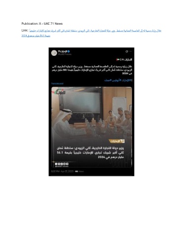Publication: X – UAE 71 News ً ُ Link: ايجيلخ تارام لإل يراجت كيرش ربكأ يناث نامع ةنطلس :يدويزلا يناث ،ةيجراخلا ةراجتلل ةلود ريزو ..طقسم ةينامعلا ةمصاعلا ىلإ هل ةيمسر ةرايز للاخ 2024 يف مهرد رايلم 56.1 ةميقب